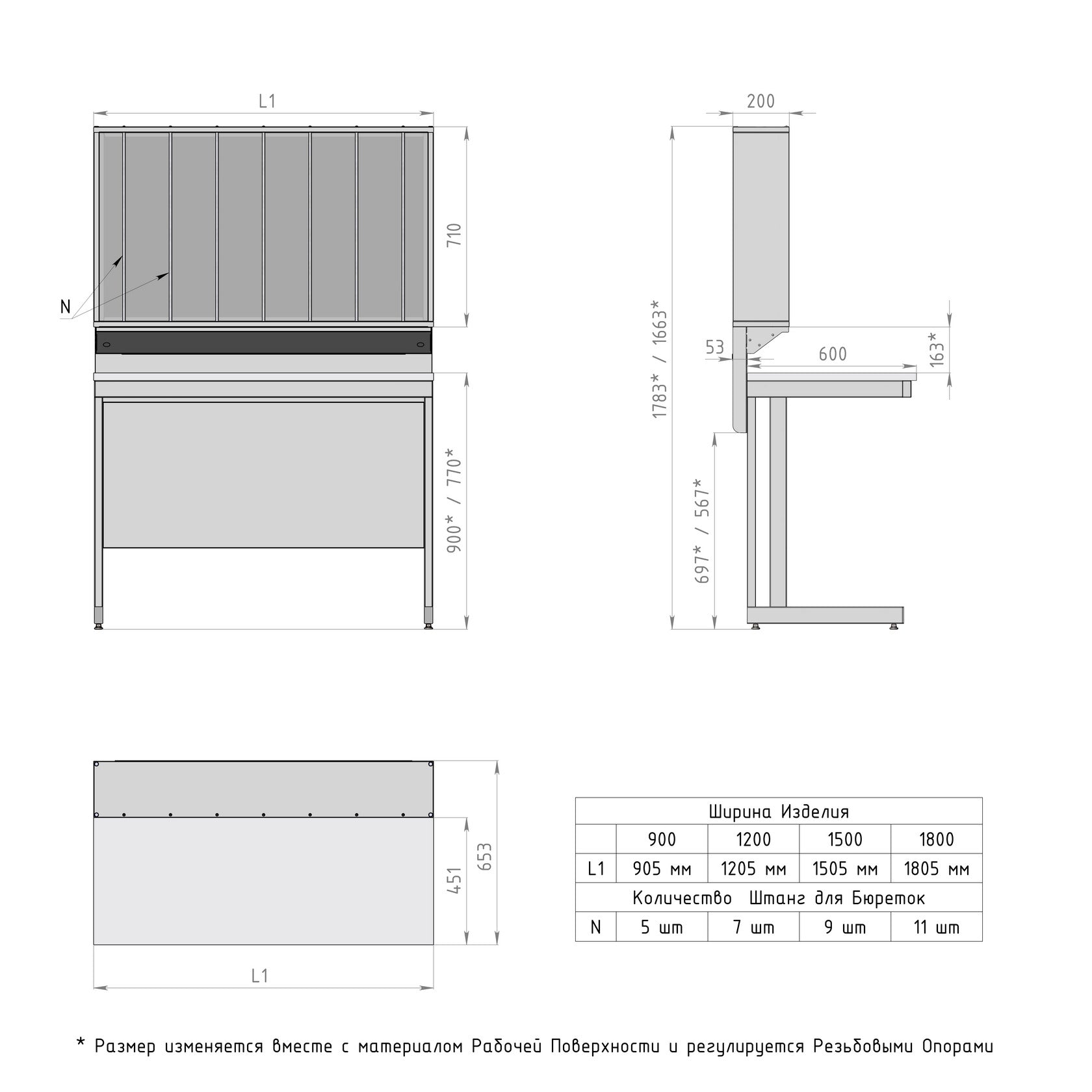 - Yorug'lik ekrani va byuretka rodlari bo'lgan ustki tuzilma (po'lat yoki polipropilendan yasalgan) (oyoqlarni alohida buyurtma qilish kerak);
