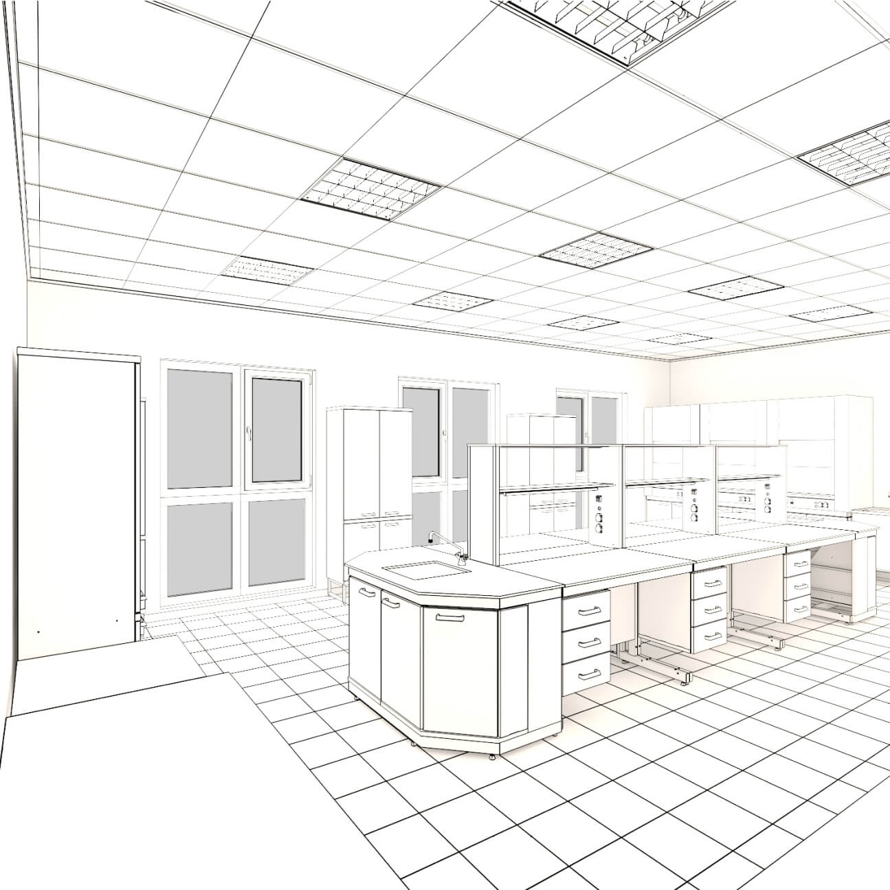 Agar dastlabki tartib mavjud bo'lsa, biz, albatta, mebelni joylashtirish bilan xonaning 3D eskizini taqdim eta olamiz. Katta loyihalar uchun biz imkoniyatlar haqida umumiy tasavvur berish uchun bir yoki ikkita laboratoriya uchun eskizlarni tayyorlashimiz mumkin. Biroq, katta ko'p xonali loyihalarning batafsil chizmalari faqat hamkorlikni tasdiqlaganidan keyin amalga oshiriladi. Bu yerda o'tgan loyihalar misollarini ko'rishingiz mumkin.