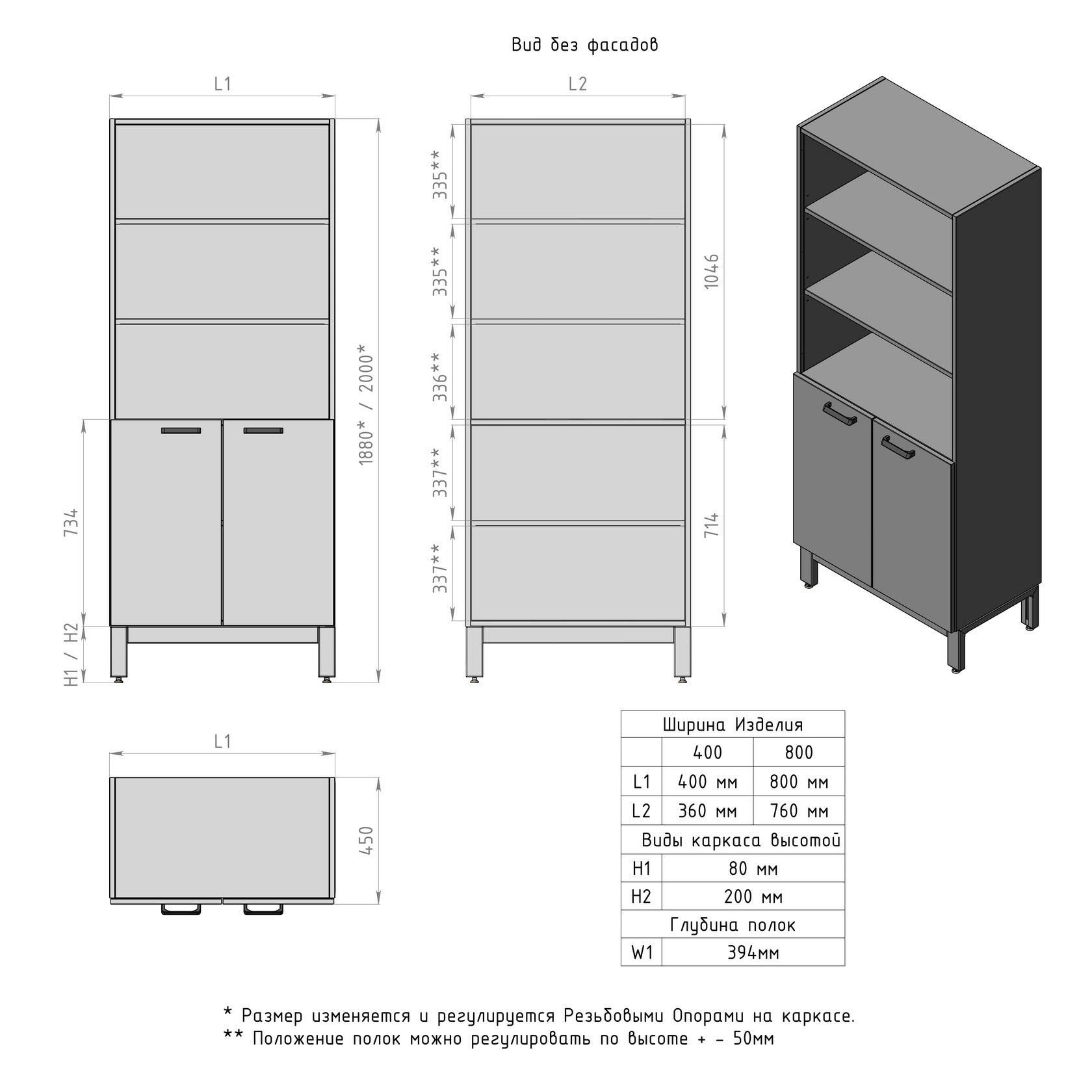 Для обеспечения надлежащего хранения в линейку Simple PRO входят шкафы шириной 15,75 дюйма (400 мм) и 31,5 дюйма (800 мм) .