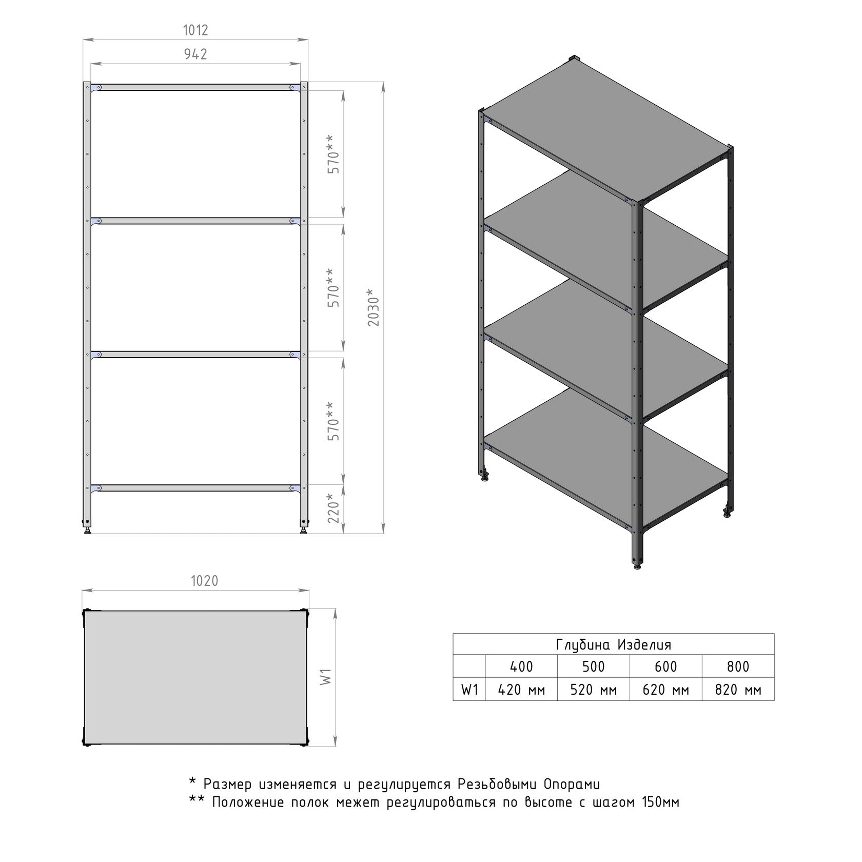 - Стандартная конфигурация: 4 полки (при необходимости можно приобрести дополнительные полки)